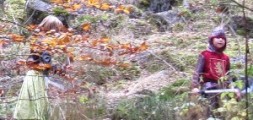 森の中で丸太に腰掛けながら編み物って、、森の妖精さん?
